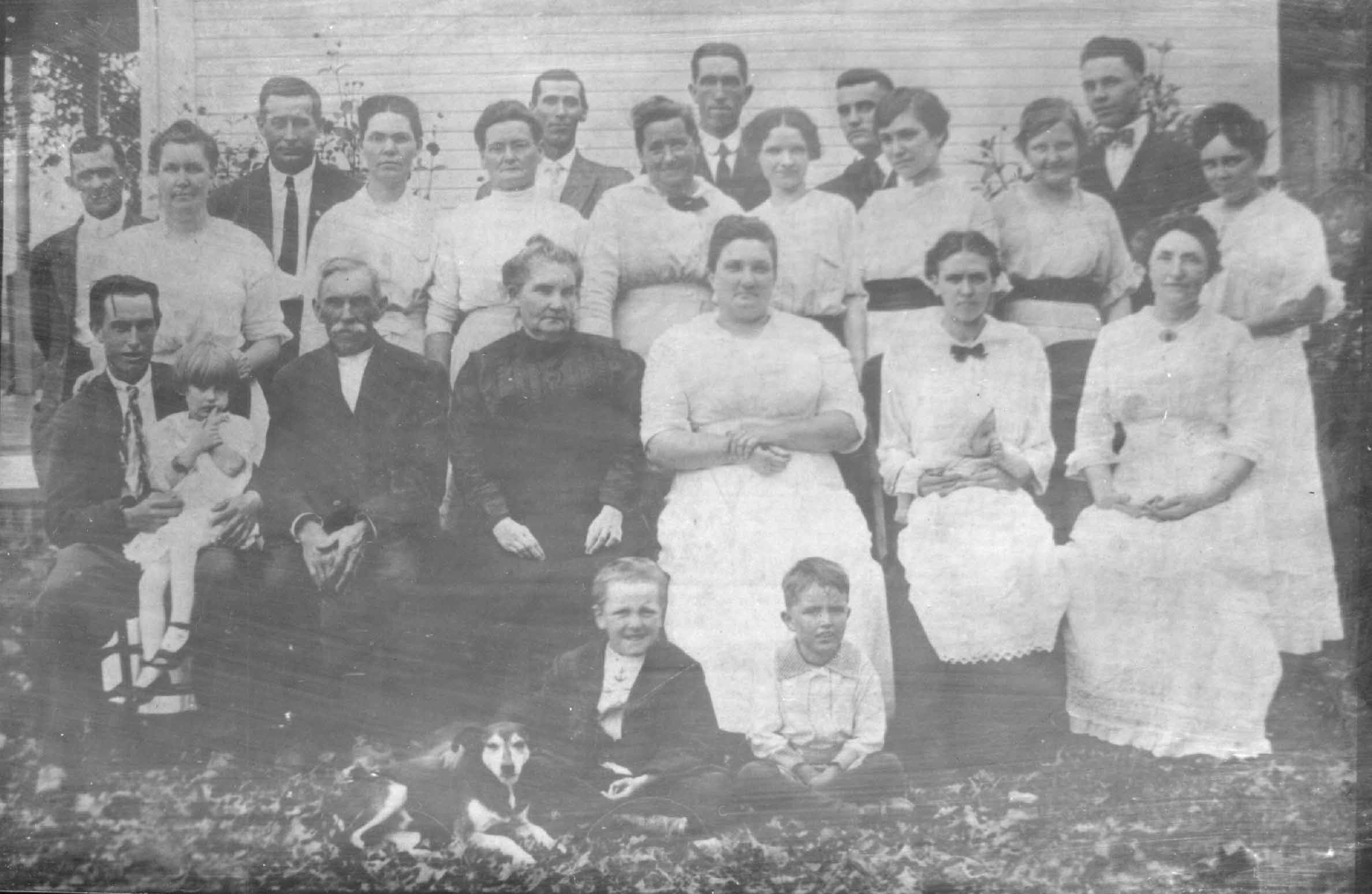 Malinda (Linny) OSBORN FRENCH, Addie OSBORN CROSS, Row Four (standing): Joe DECK, Charles CROSS, Frank WARD, Oscar OSBORN, Joe DECK, Leo GLENN not pictured: Charles OSBORN and wife Etta & son Wilmer |